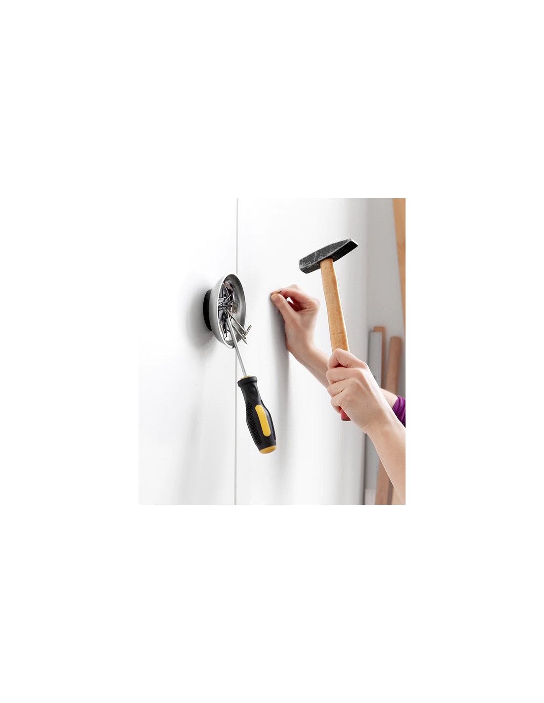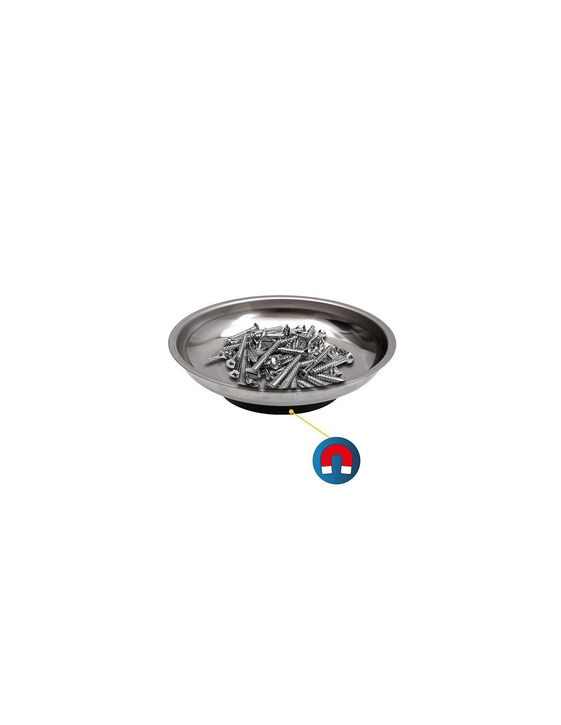 El plato imantado mantiene siempre a la vista todas las piezas metálicas que necesitas.