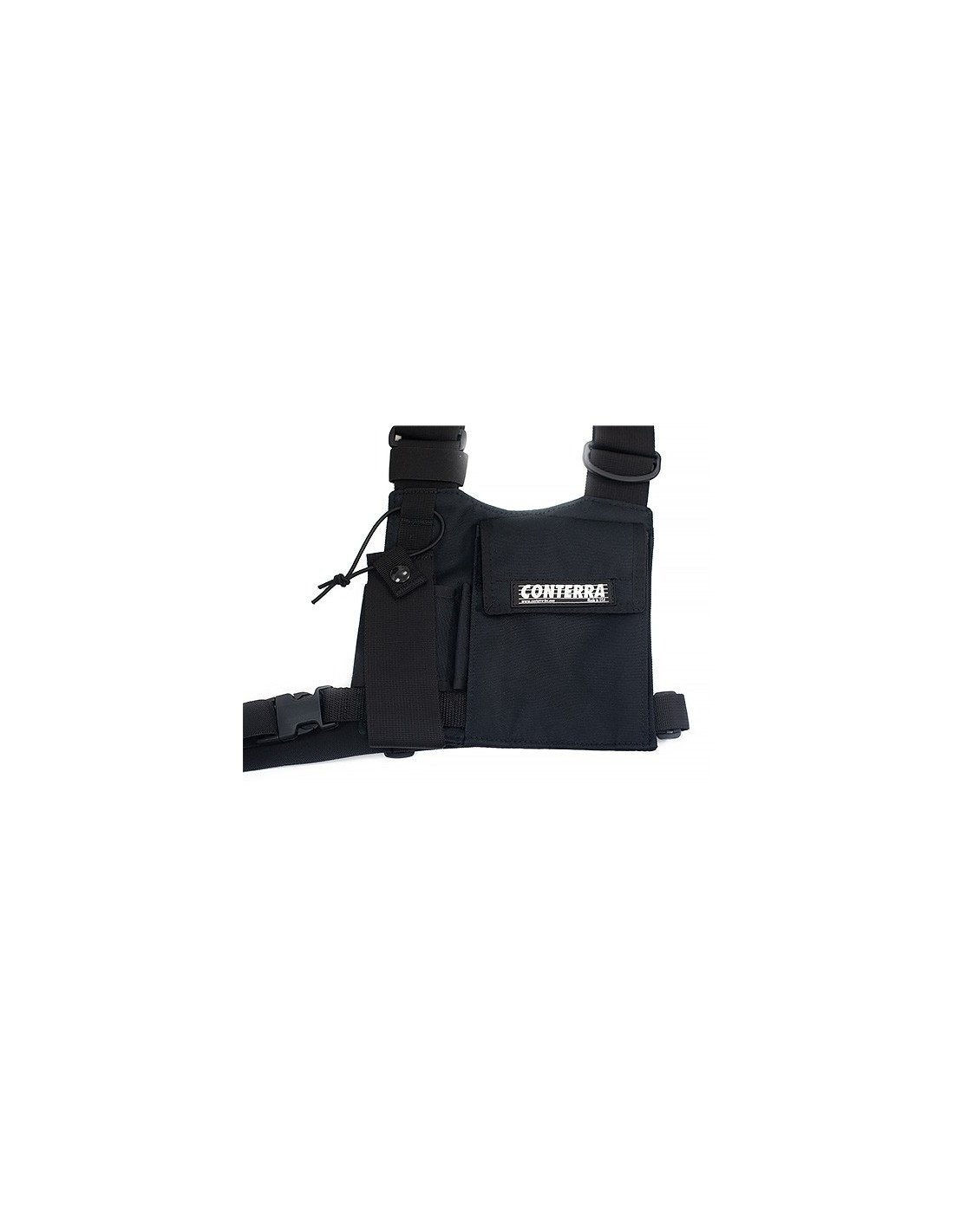 Diseñado originalmente para patrullas de esquí y rescate en montaña, este arnés de radio de "talla única" se ajustará instantáneamente para sujetar cualquier radio a su pecho sin el uso de múltiples correas o hebillas que se encuentran en arneses de menor calidad.