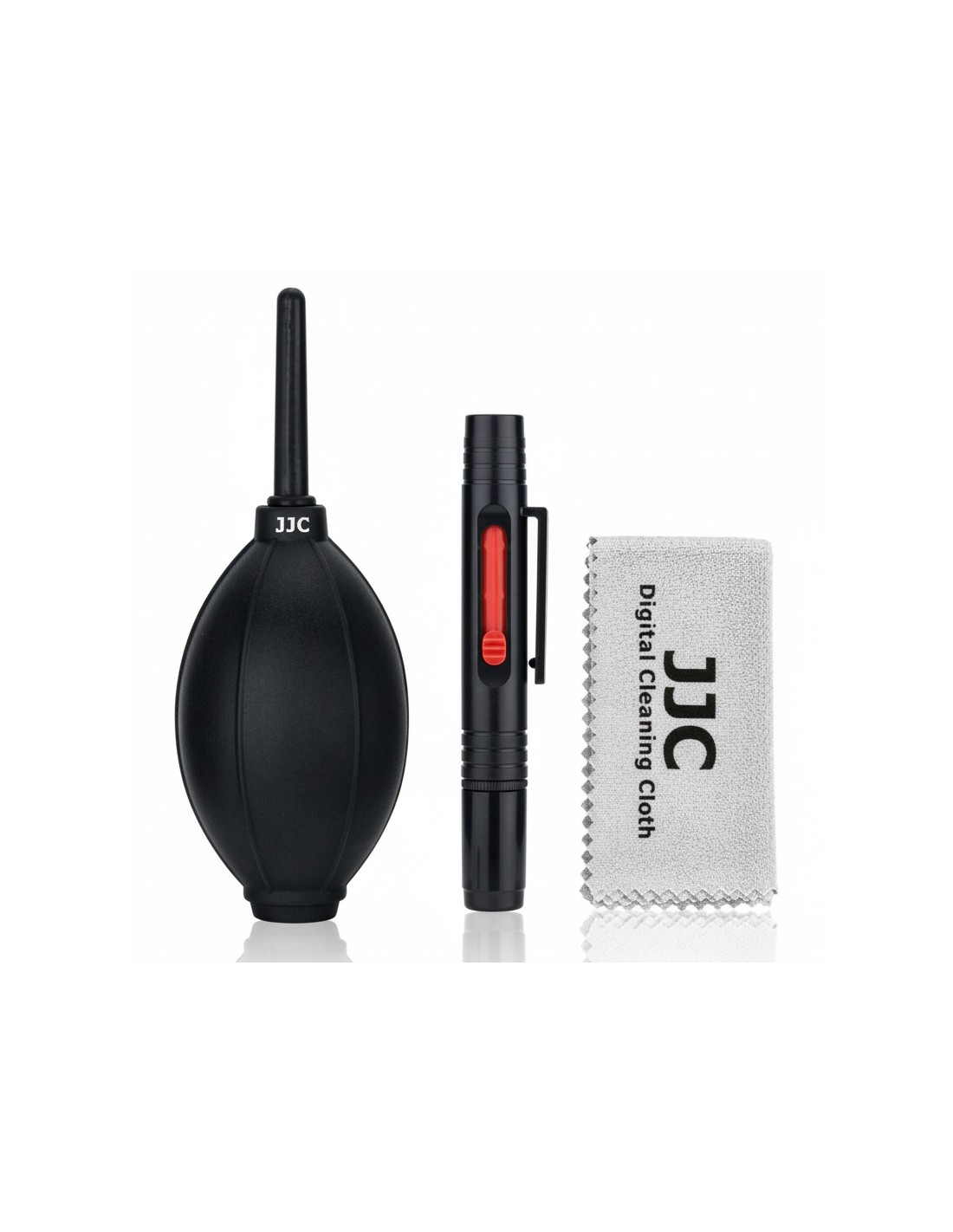 Pera de aire JJC con gamuza y pincel – Limpieza segura para cámaras, lentes y equipos.