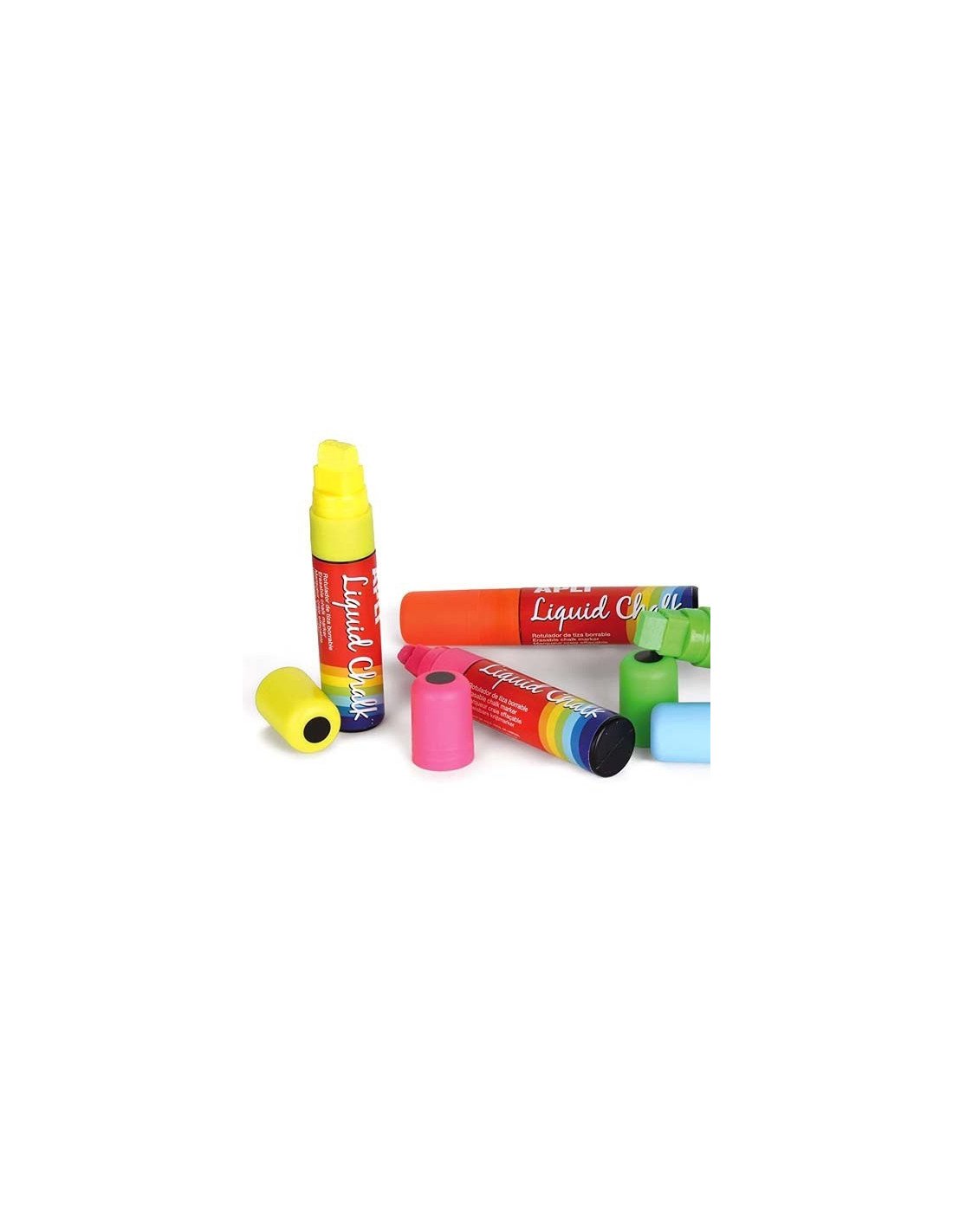 Estuche de rotuladores de tiza borrable. A base de agua, se limpian fácilmente con un paño húmedo.