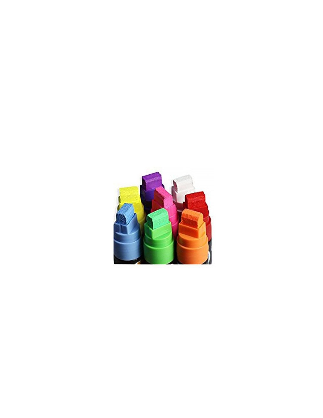 Punta cuadrada de 15mm. El estuche tiene 5 unidades de los siguientes colores: Verde, Naranja fluorescente, Rosa fluorescente, Amarillo fluorescente y Azul.
