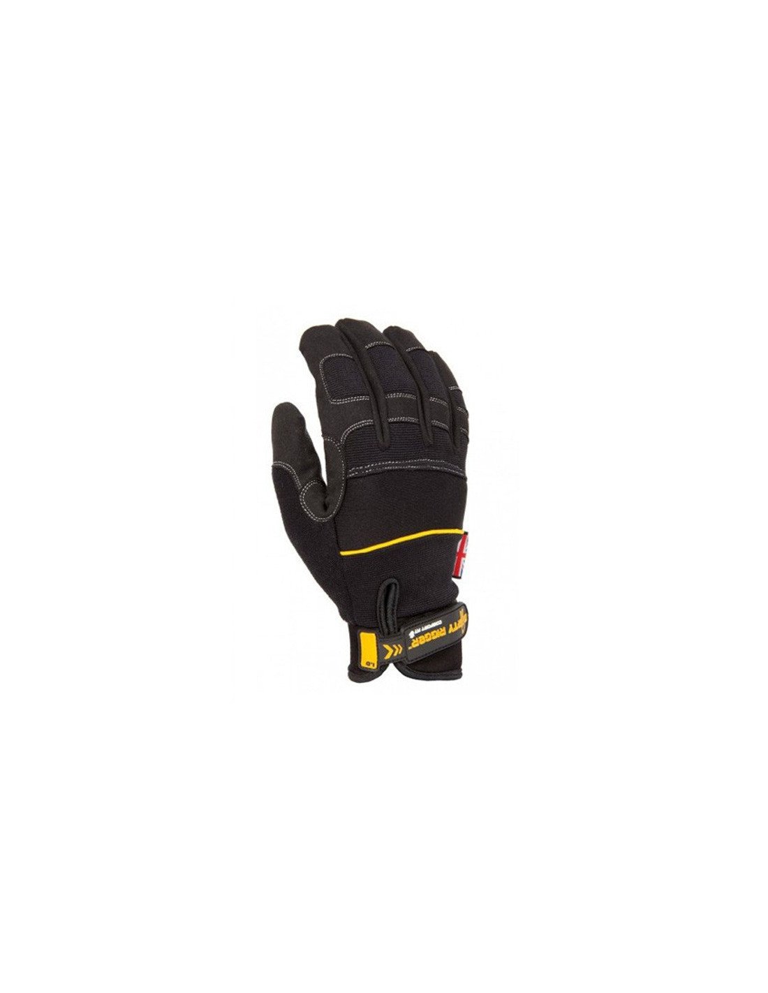 Costura doble de nylon, cubierta texturizada para agarre en índice y pulgar. Zona absorvente de tela de toalla en su interior. Banda en la muñeca para identificación.