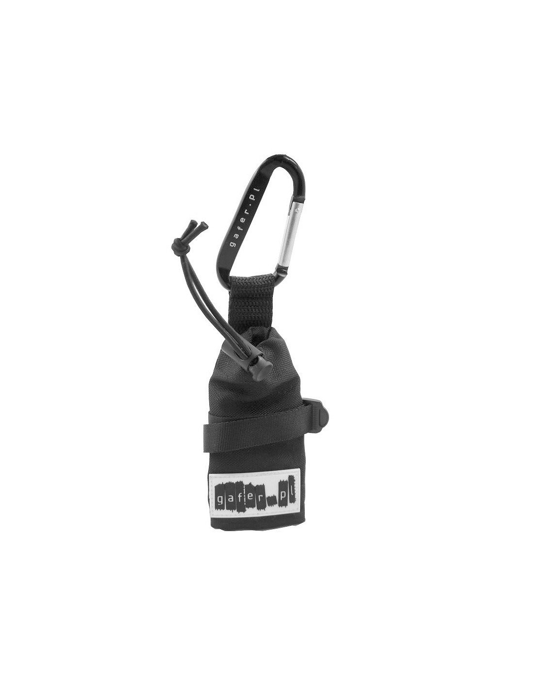 Además, el asa puede pasar por un cinturón y se puede asegurar con el mosquetón de plástico incluido para mayor comodidad.